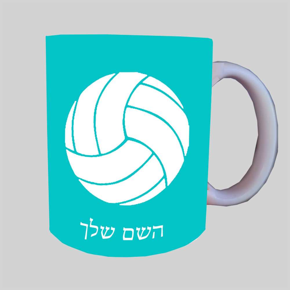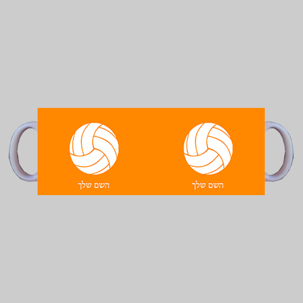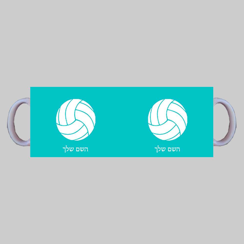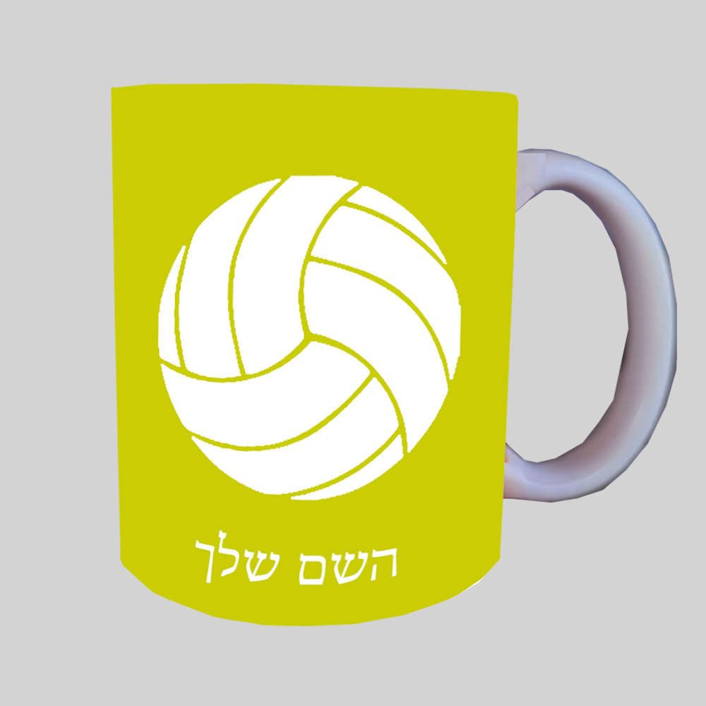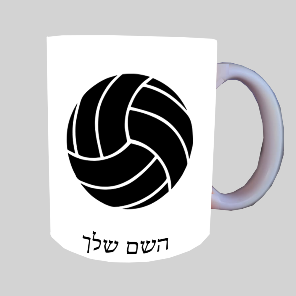 כדור כדורעף ספל תה \ קפה מעוצבת בעיצוב אישי עם השם שלך ב10 צבעים לבחירה