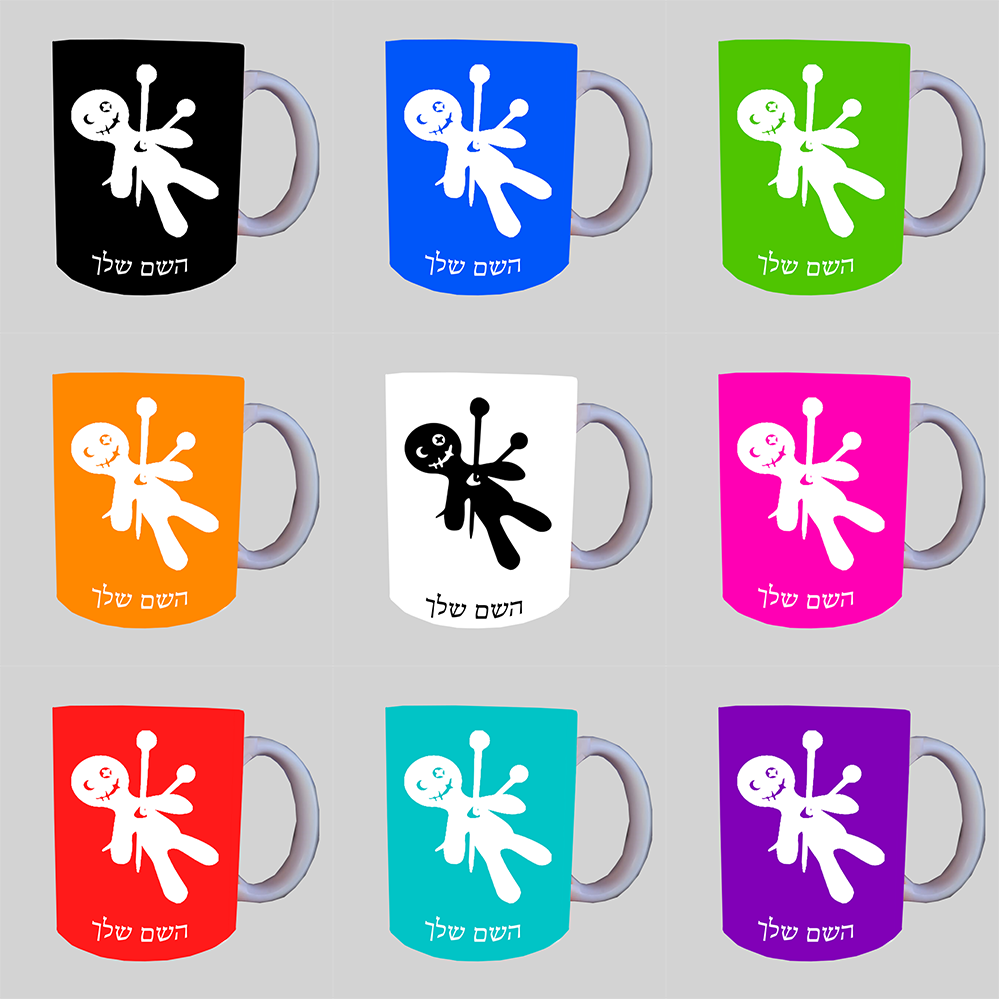 וודו ספל תה \ קפה מעוצבת בעיצוב אישי עם השם שלך ב10 צבעים לבחירה